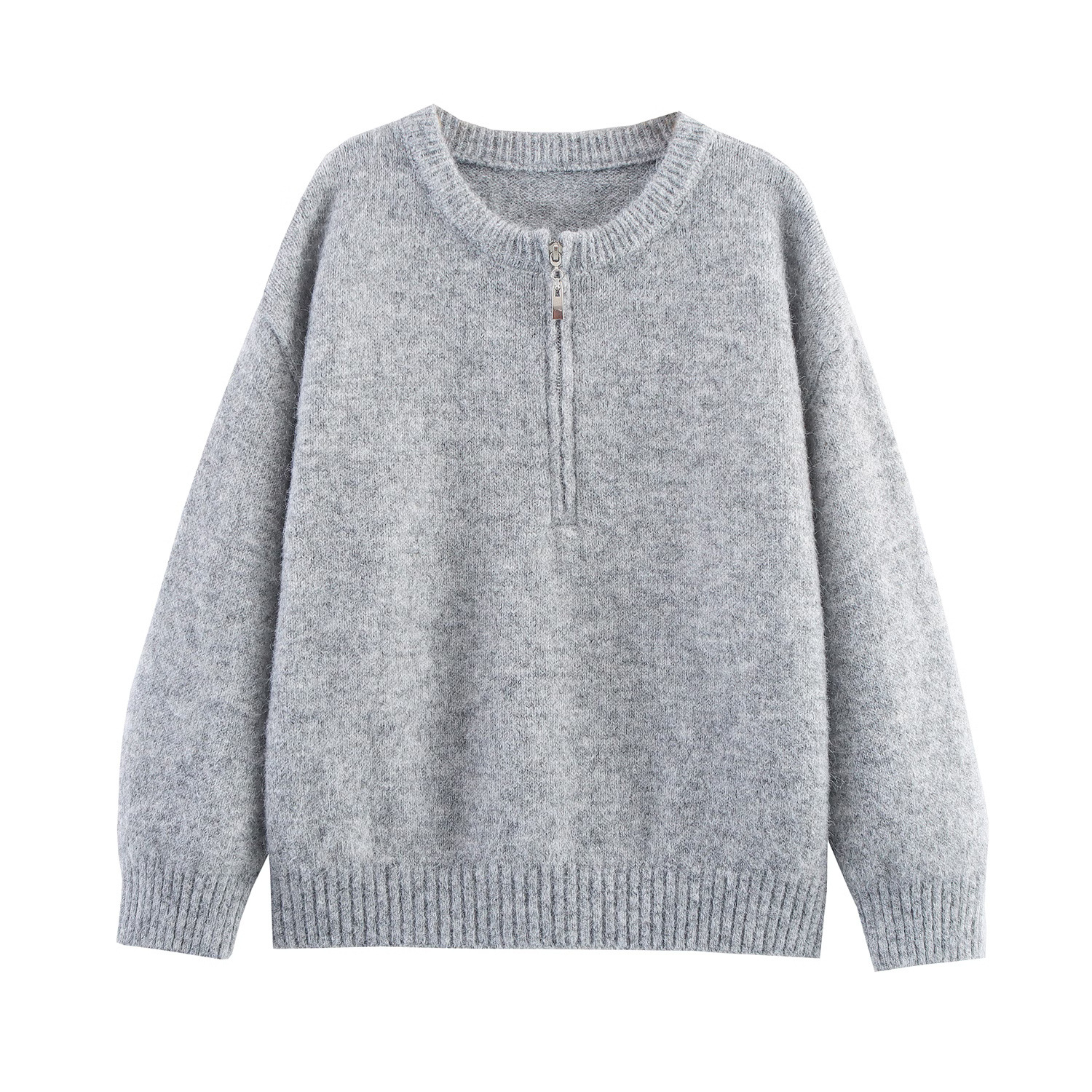 The Half-Zip Knit Skirt Set A soft knit two-piece set in a light gray tone. Designed with a relaxed half-zip pullover and a fitted mini skirt that creates an easy, balanced shape. Comfortable, minimal, and made for cooler days.